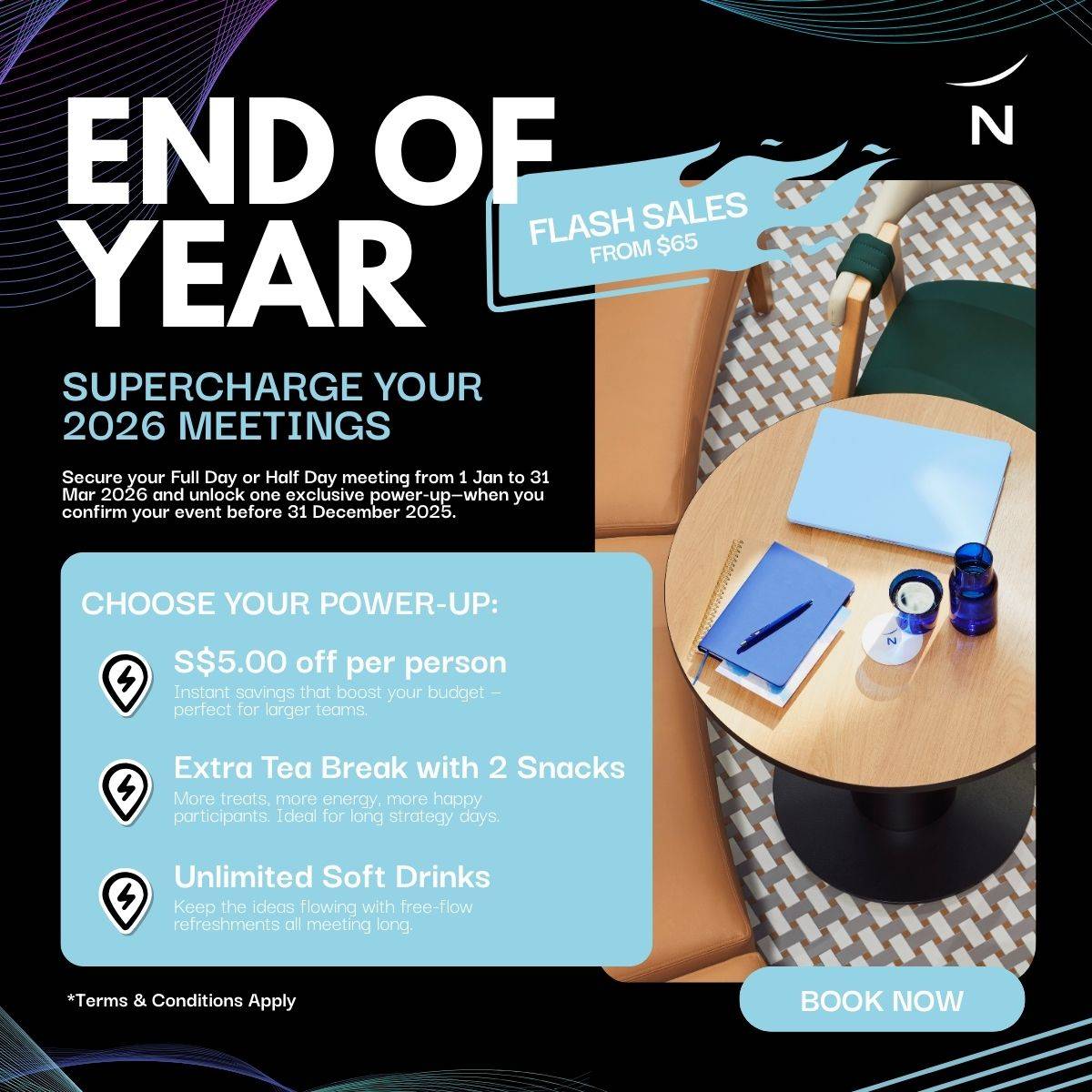 Book your Full Day or Half Day meeting (from $65 per person) between 1 Jan – 31 Mar 2026 and unlock ONE exclusive bonus perk of your choice: