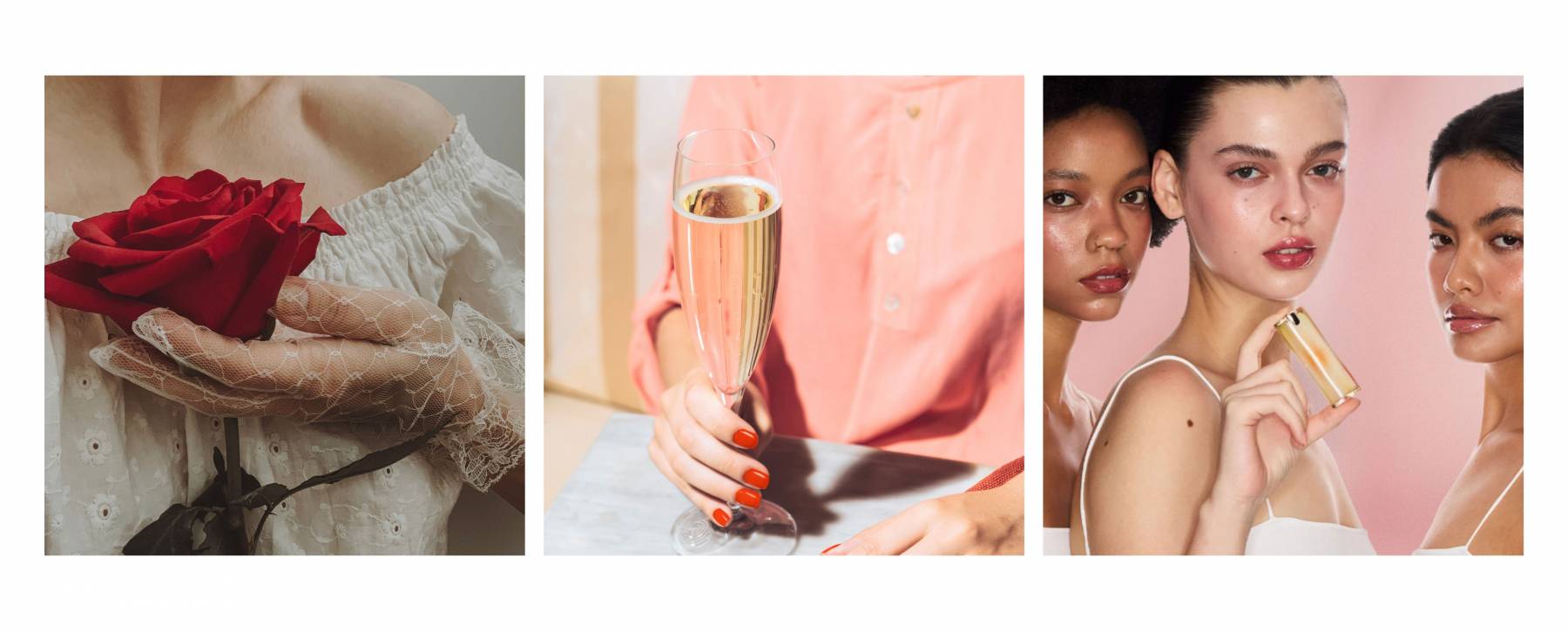 Each set includes a single rose, a bottle of Prosecco – Bolla Prosecco Rose D.O.C. Extra Dry, a JOOCYEE Beauty Set, and a surprise chocolate dessert